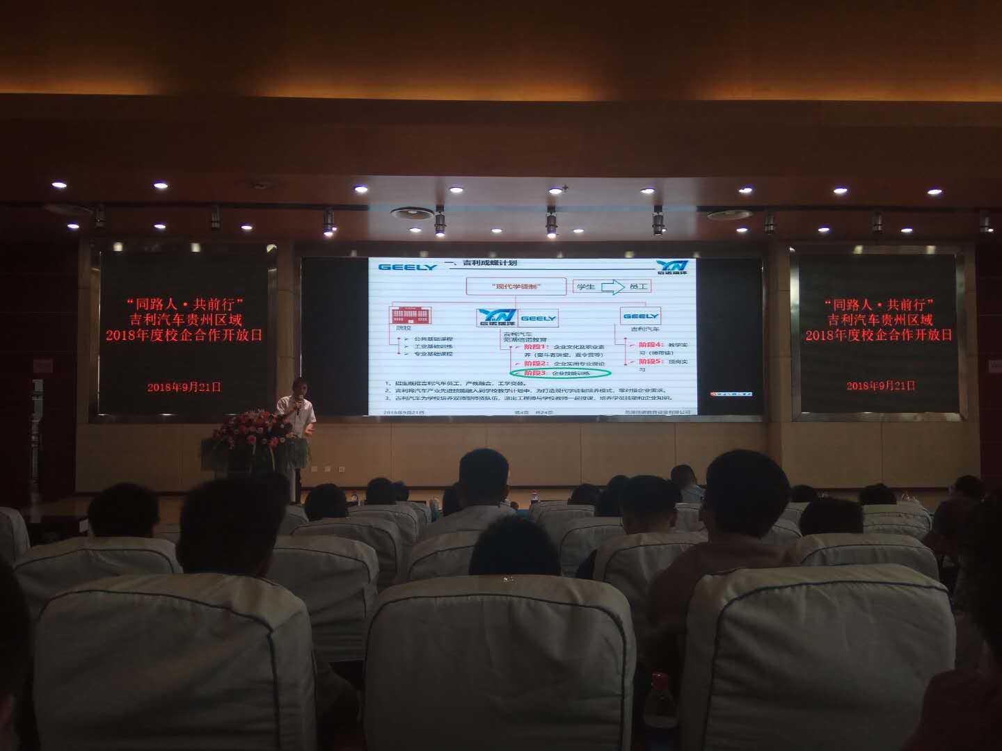 2018年9月21日,吉利汽車在貴陽舉辦校企合作開放日活動(dòng),來自貴州全省幾十家中高職院校歡聚一堂,共建育人之道、共商校企合作大計(jì)。公司總經(jīng)理王青海先生在此次活動(dòng)中,發(fā)布吉利-信諾“成蝶計(jì)劃”校企合作項(xiàng)目,搭建學(xué)校、學(xué)生、吉利汽車多方共贏平臺(tái),打造現(xiàn)代學(xué)徒制職業(yè)教育模式。