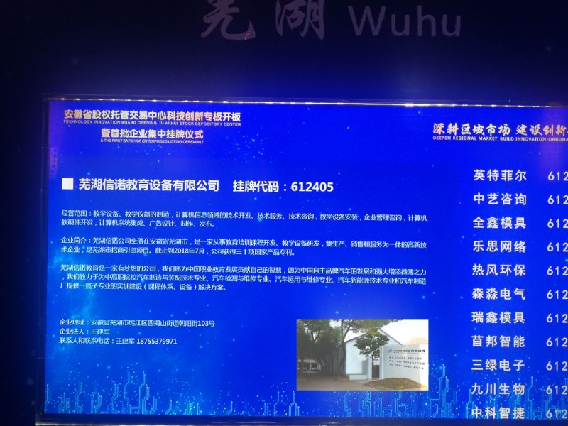 2019年4月24日,公司在安徽省科技創(chuàng)新板成功掛牌,公司代表楊總出席安徽省股權托管交易中心科技創(chuàng)新專板開板暨首批企業(yè)集中掛牌儀式。